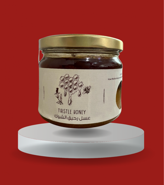 Thistle Honey: Is a golden beige crystallized honey. Its unique texture is attributed to the nectar source, the thistle and trefoil flowers that grow on the highest altitudes of Jabal Moussa.