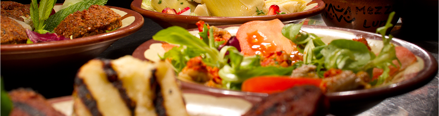 Mezza: Hummus - Labneh – Baladeh Cheese - Baked potatoes - Beid bi Sumac - Loubieh bi zet or Rechta bi Aadas - Vegetables and Olives - Seasonal Fruits