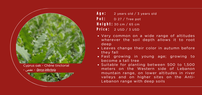 Our seedlings also serve nationwide reforestation initiatives and thousands of seedlings from the provenance of Jabal Moussa helped reforest sites all over Lebanon. (The most renowned project so far was the Lebanon Reforestation Initiative (LRI) in which overall survival rates of our seedlings reached up to 91%).