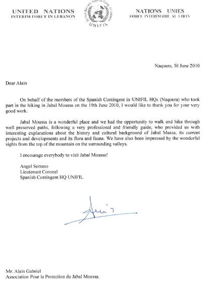 10th Aug 2016June 2010- "On behalf of the members of the Spanish Contingent in UNIFIL HQs (Naqoura) who took part in the hiking in Jabal Moussa..." (...)